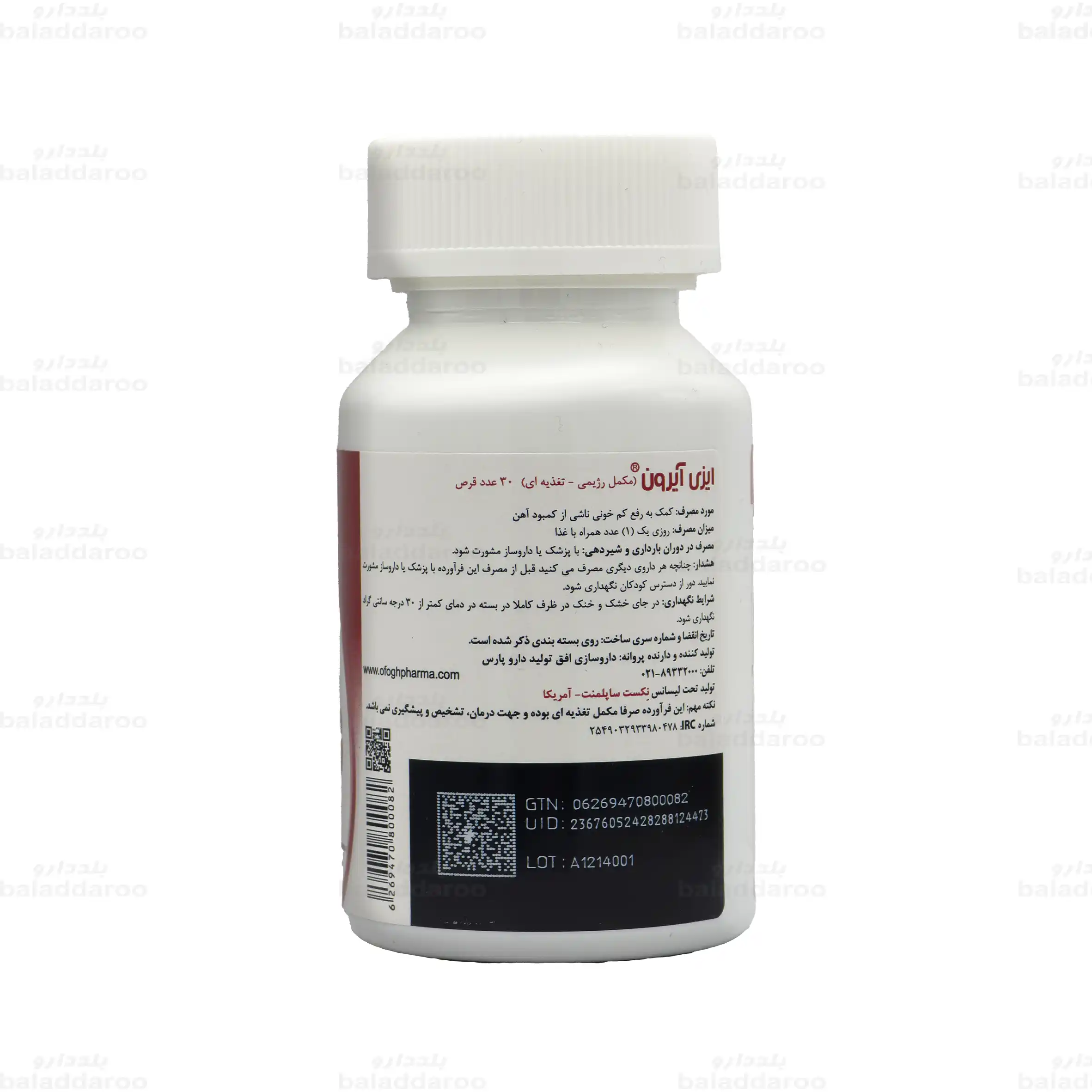 این مکمل حاوی آهن به فرم فروس سولفات است که با تامین آهن مورد نیاز بدن، به رفع و جلوگیری از بروز کم خونی ناشی از فقر آهن کمک می کند. برای خرید قرص ایزی آیرون پلاس نکست می توانید به سایت داروخانه آنلاین بلد دارو مراجعه نمایید و پس از کسب اطلاعات درباره فرآورده و اطلاع از انقضای آن، سفارش خود را ثبت نمایید. بلد دارو ضمن تضمین اصالت کالاها، تمامی سفارشات در کوتاه ترین زمان ممکن و با بسته بندی مناسب ارسال می گردد.