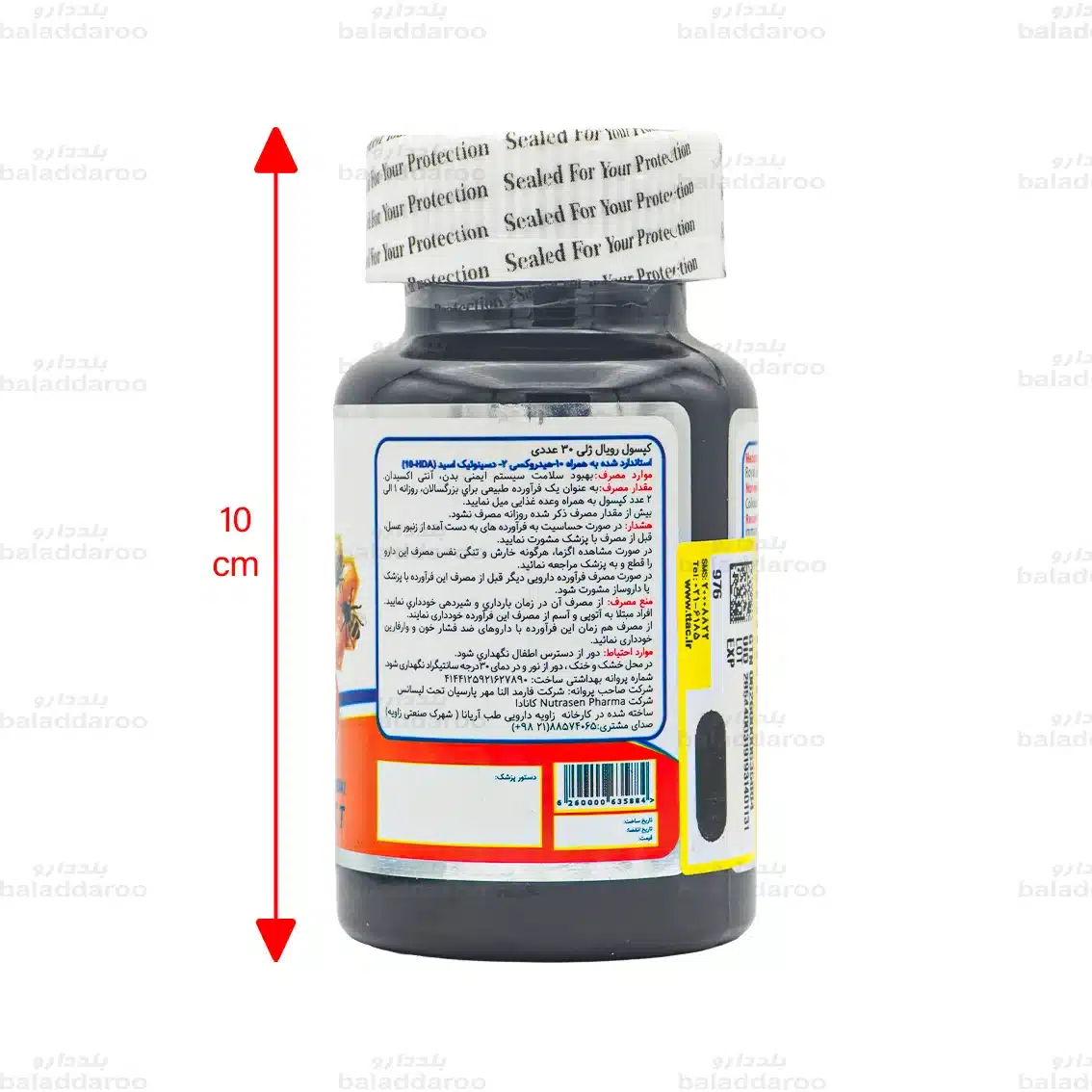 کپسول رویال ژلی نوتراسن حاوی 400 میلی گرم ژل رویال است که دارای خواص آنتی اکسیدانی، ضد ویروسی و ضد میکروبی است. این فرآورده علاوه بر تقویت سیستم ایمنی، در افزایش انرژی، بهبود عملکرد جسمی و افزایش انرژی نقش اساسی ایفا می کند.
