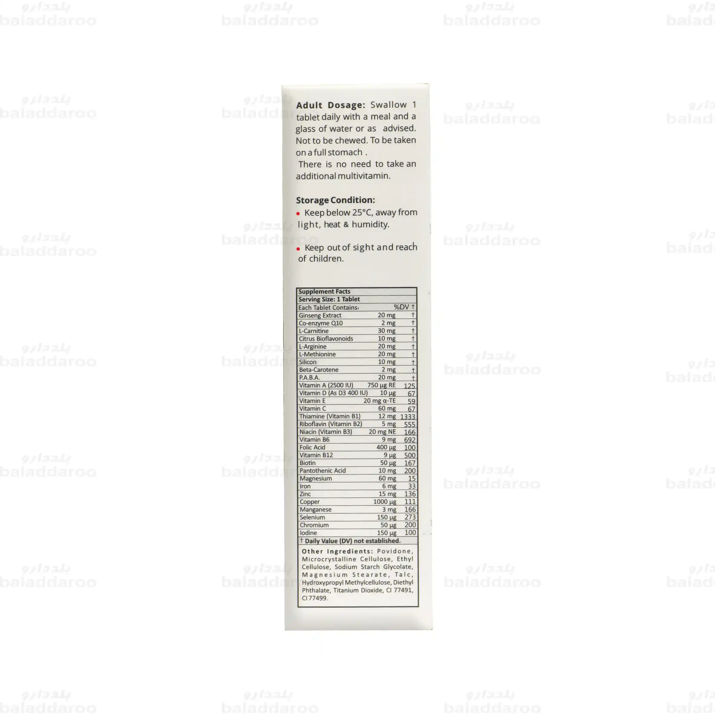 | ترکیبات | مقدار در هر قرص | درصد نیاز مصرف روزانه |