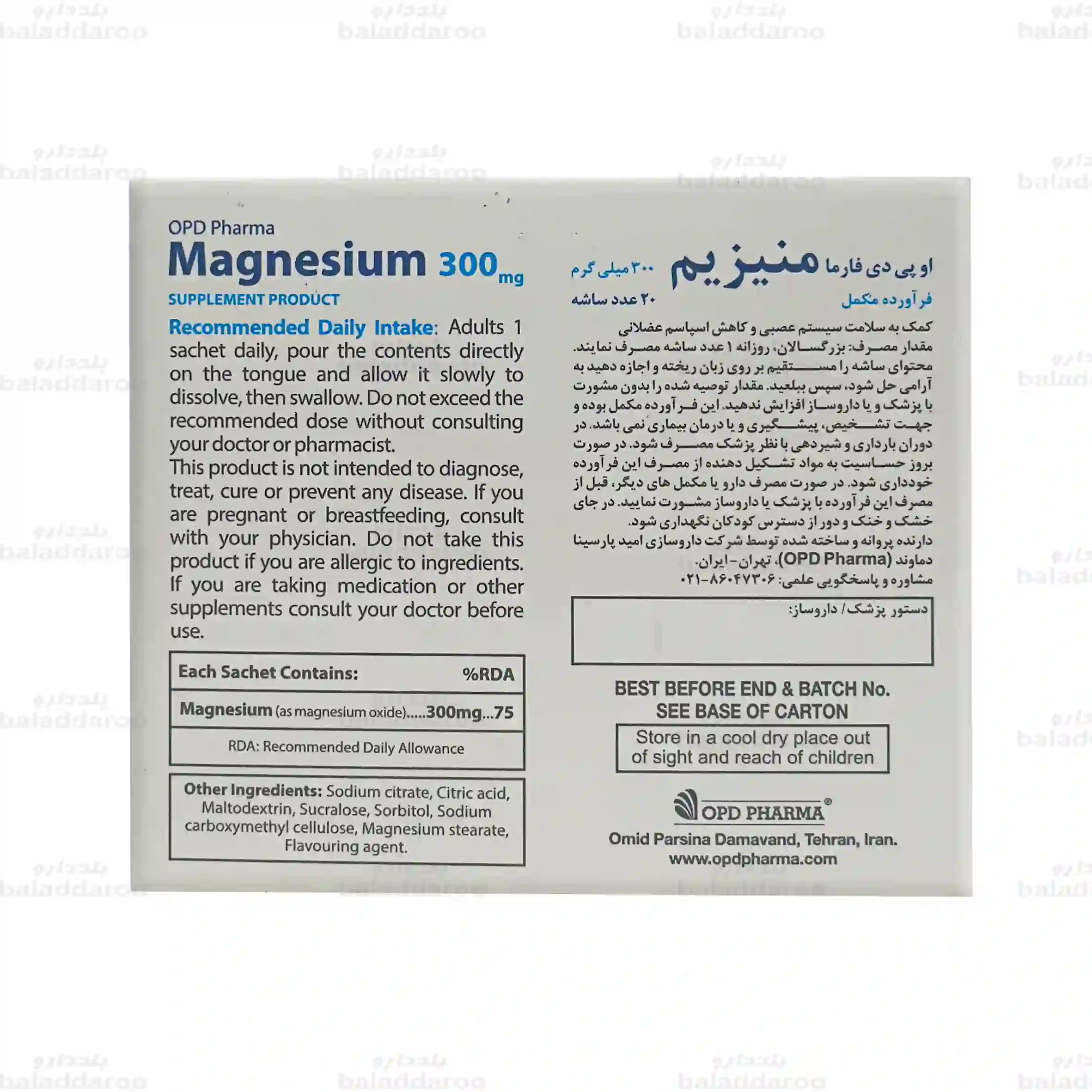 ویژگی ساشه منیزیم 300 میلی گرم او پی دی فارما