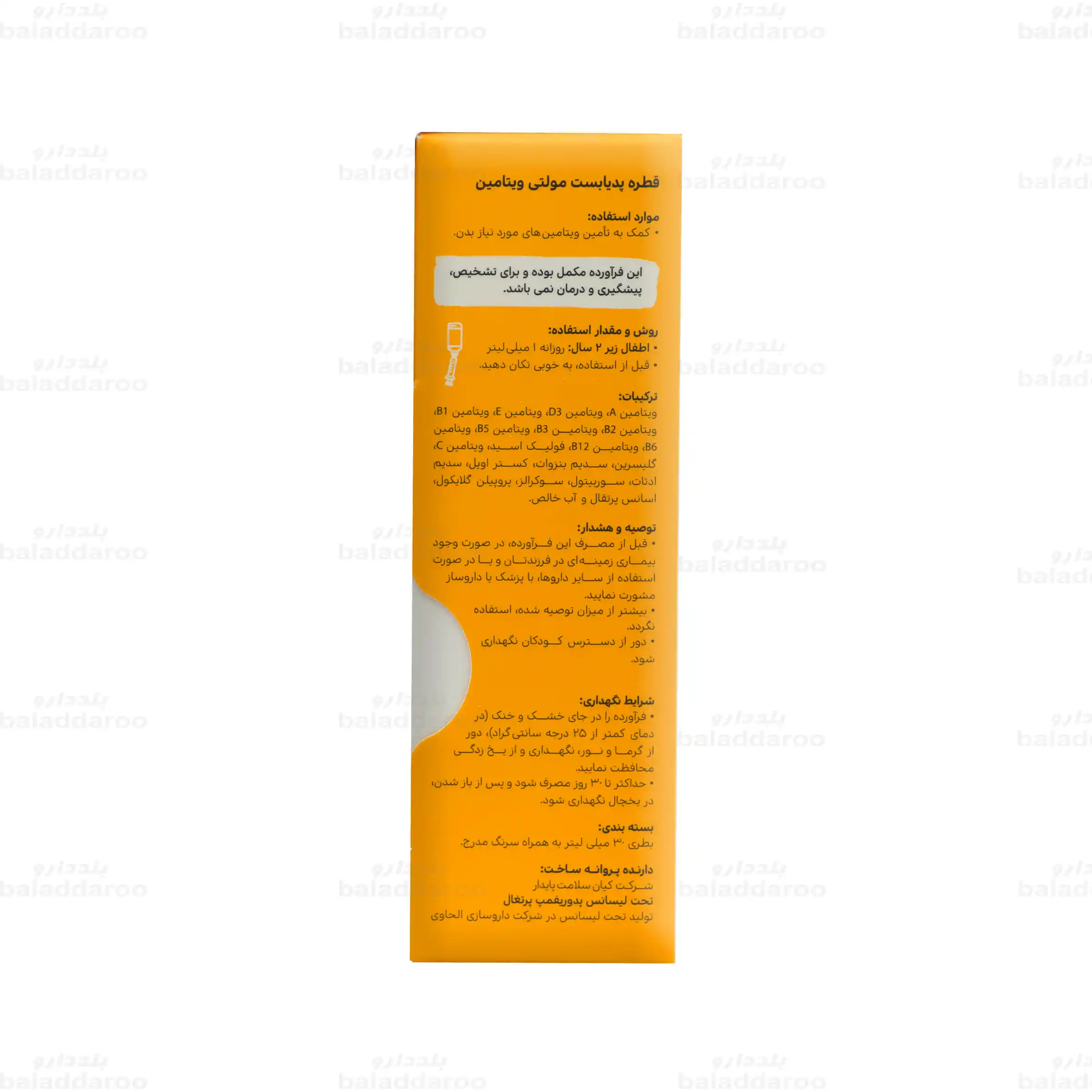 احتیاط های قطره مولتی ویتامین پدیابست