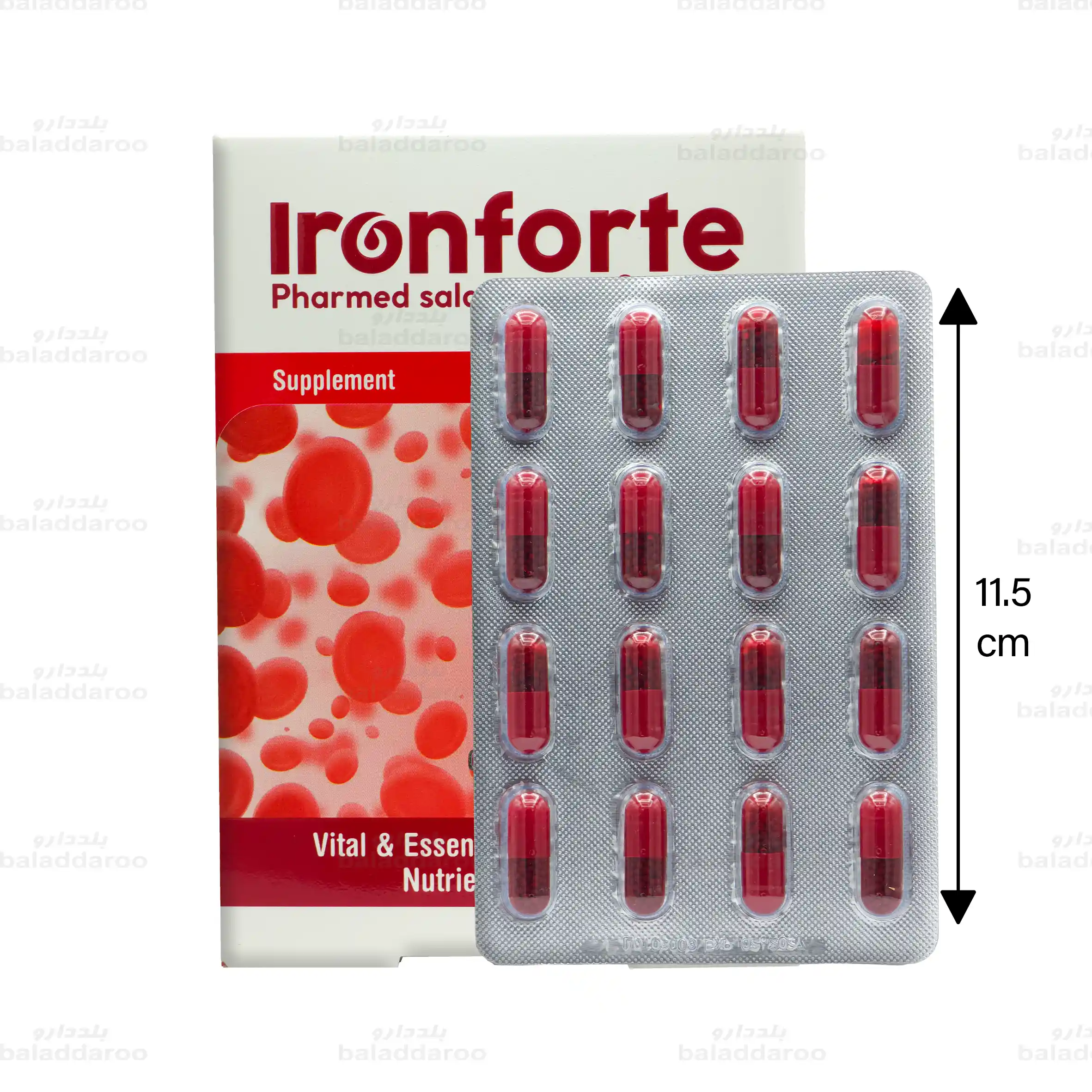 کپسول آیرون فورت فارمد سلامت سینا یک مکمل غذایی موثر است که به طور تخصصی برای پیشگیری و درمان کم خونی ناشی از فقر آهن طراحی شده است. این محصول حاوی 100 میلی گرم آهن خالص به فرم فروس گلایسین سولفات است که جذب بهتری نسبت به سایر فرم های آهن دارد و باعث کاهش عوارض گوارشی چون یبوست، تهوع و… می شود. علاوه بر این آهن موجود در این مکمل به شکل پلت های دئودنال با پوشش روده ای تهیه شده است تا به طور تخصصی آهن مورد نیاز بدن را تامین کند و از بروز عوارض گوارشی شایع ناشی از مصرف آهن جلوگیری نماید.