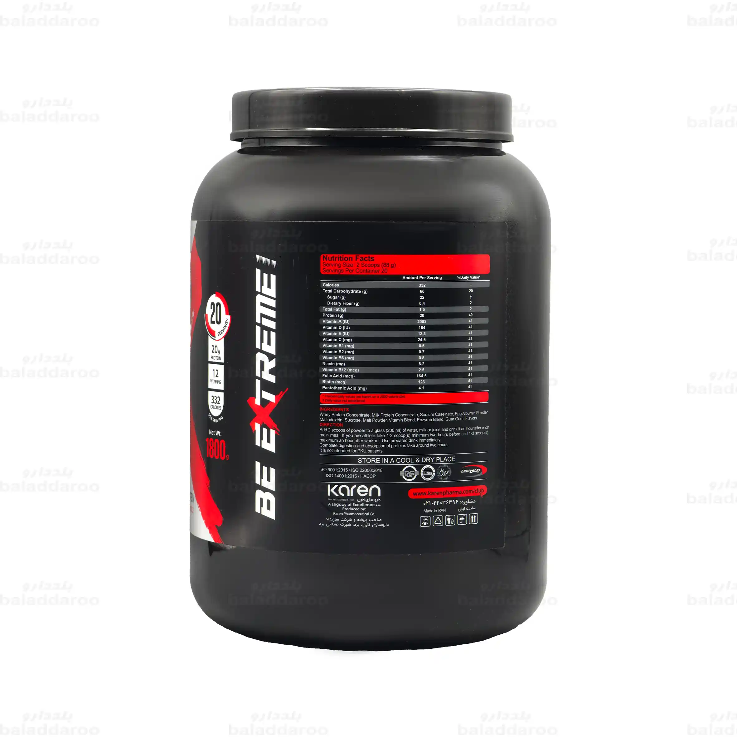 این مکمل حاوی 60 گرم کربوهیدرات، 20 گرم پروتئین، ویتامین ها و مواد معدنی است که کالری بسیار بالایی دارد. این فرآورده با کمک به تامین بخشی از پروتئین و کربوهیدرات مورد نیاز بدن، در حفظ سلامت عضلات، افزایش وزن و حجم در ورزشکاران و غیر ورزشکاران، بازسازی ذخایر گلیکوژنی پس از تمرین و جلوگیری از تحلیل عضلانی نقش اساسی دارد. همچنین از آن برای افزایش وزن و حجم عضلانی در دوران حجم استفاده می شود.