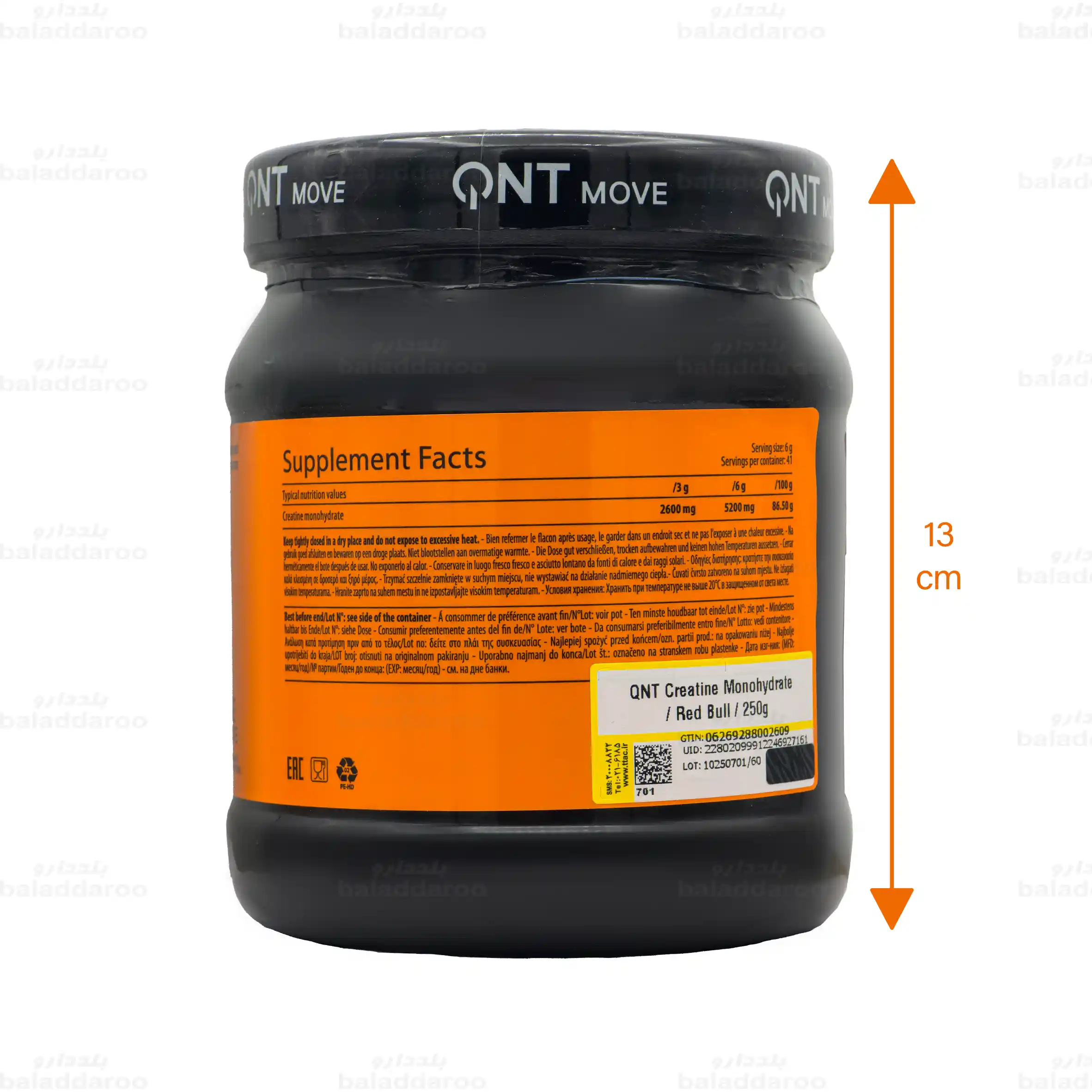 کراتین ردبول کیو ان تی، حاوی کراتین مونوهیدرات است که به عضله سازی، حفظ سلامت عضلات، بهبود عملکرد ورزشی، افزایش قدرت و بهبود عملکرد بدن در تمرینات کوتاه و شدید کمک می کند.
