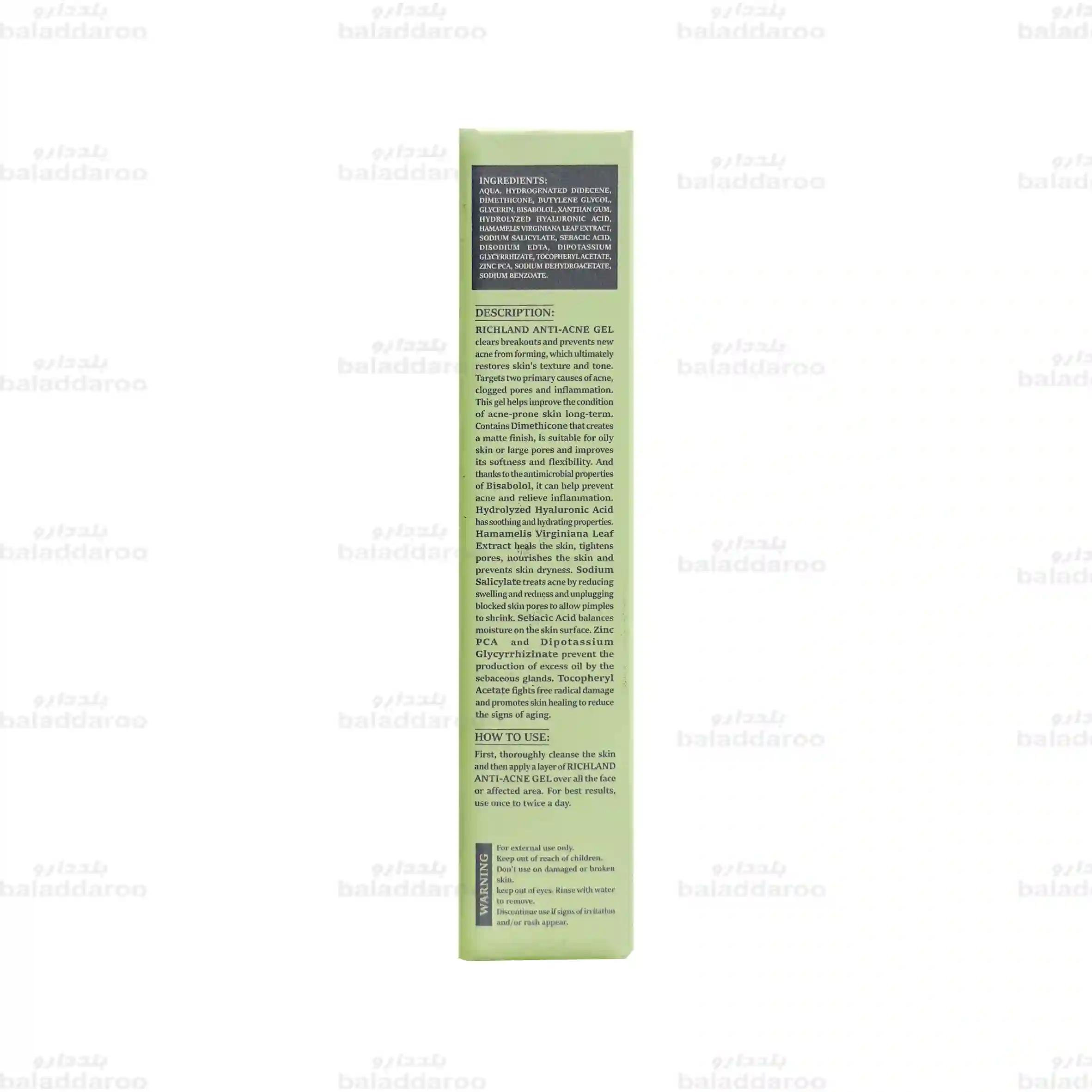 برای خرید ژل ضد جوش ریچلند می توانید به سایت داروخانه آنلاین بلد دارو مراجعه نمایید و از مزایای خرید اینترنتی برخوردار شوید. تمامی محصولات موجود در بلد دارو تاریخ انقضا معتبر و بارکد اصالت کالا داشته و سفارشات در کوتاه ترین زمان ممکن و بسته بندی ایمن به دست شما می رسد.