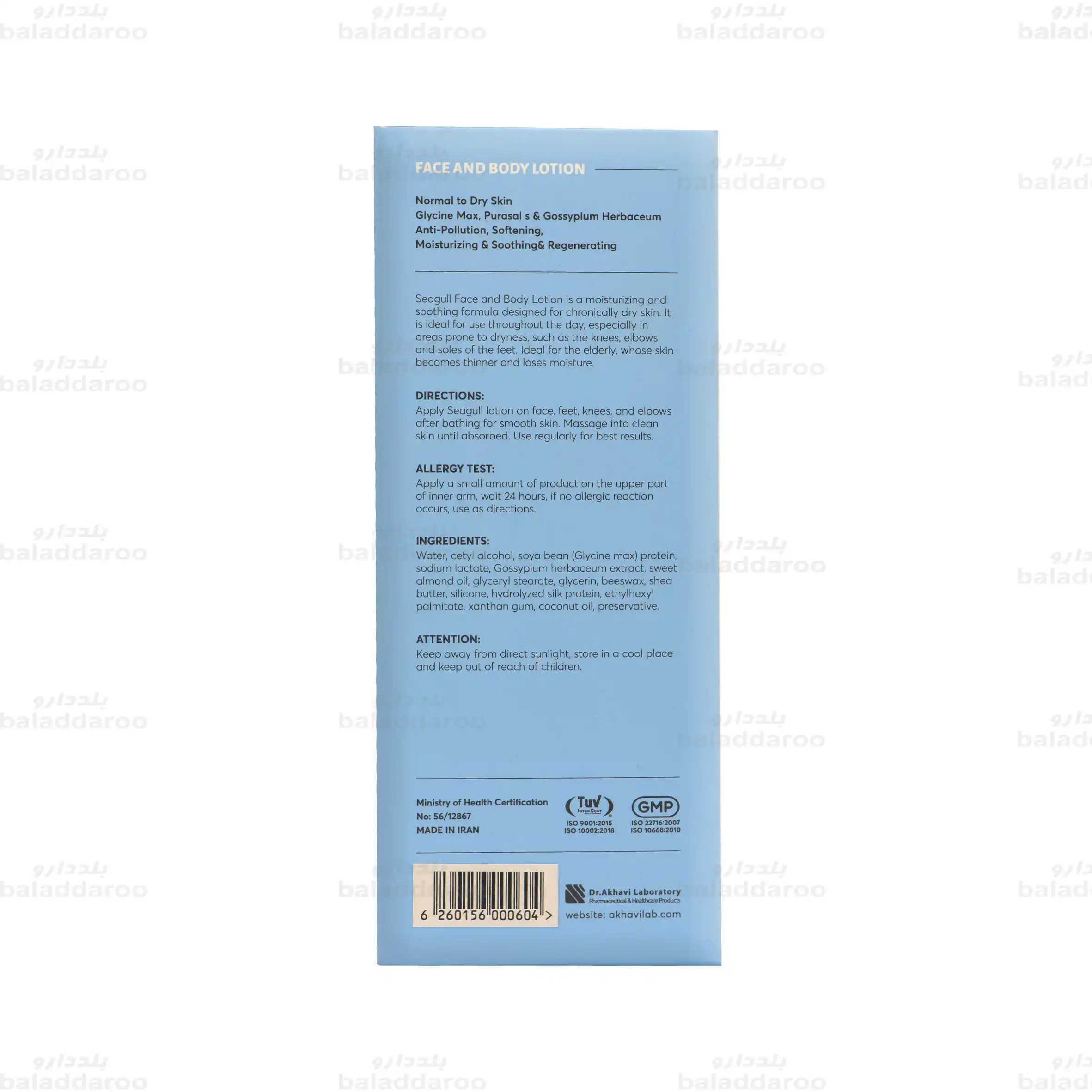 پوست بدن به ویژه اگر خشک و حساس باشد همانند پوست صورت نیاز به آبرسانی و مراقبت ویژه دارد. این محصول با فرمولاسیونی حاوی سدیم لاکتات و عصاره پنبه دانه، رطوبت از دست رفته پوست را باز می گرداند و با ایجاد لایه ای محافظ، از پوست در برابر خشکی و آسیب های محیطی مراقبت می کند.