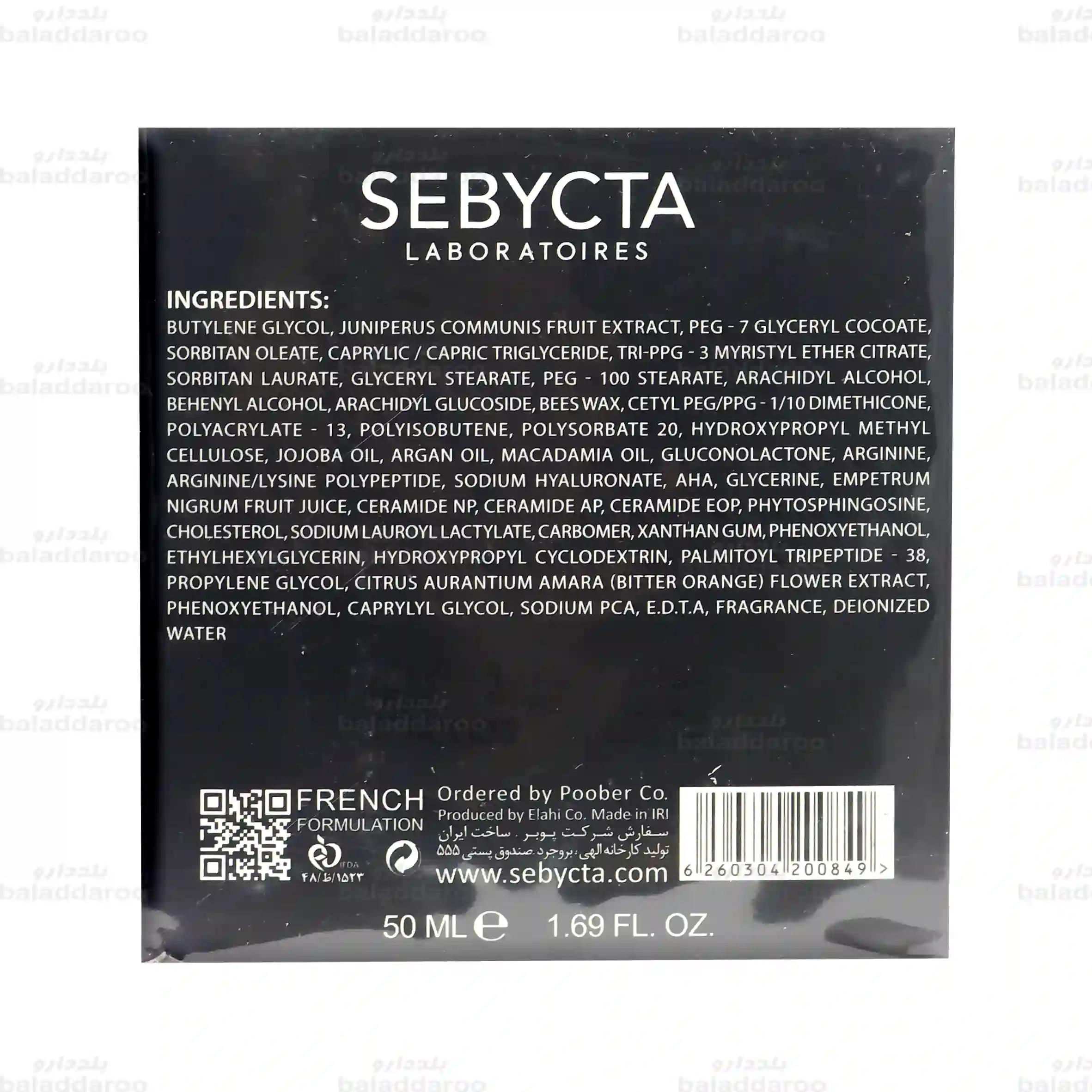 بوتيلن كلايكول، جونيپرس كامونيس فروت اكستركت، بى اى جى- 7 كليسيريل كوكوات، سوربيتان اولئات، كاپريليك/ كاپريك ترى كليسيريد، ترى-يى بى جى-3 ميريستيل اتر سيترات، سوربيتان لورات، كليسيريل استئارات، بى اى جى- 100 استئارات، آرشيديل الكل، بهنيل الكل، آرشيديل كلوكوزايد، موم زنبور عسل، ستيل يى اى جى/ بى بى جى-1/10 دايمتيكون، يلى آكريلات13، پلى ايزوبوتن، پلى سوربات20، هيدروكسى پروپيل متيل سلولز، روغن جوجوبا، روغن آركان، روغن ماكادميا، كلوكونولاكتون، آرزنين،