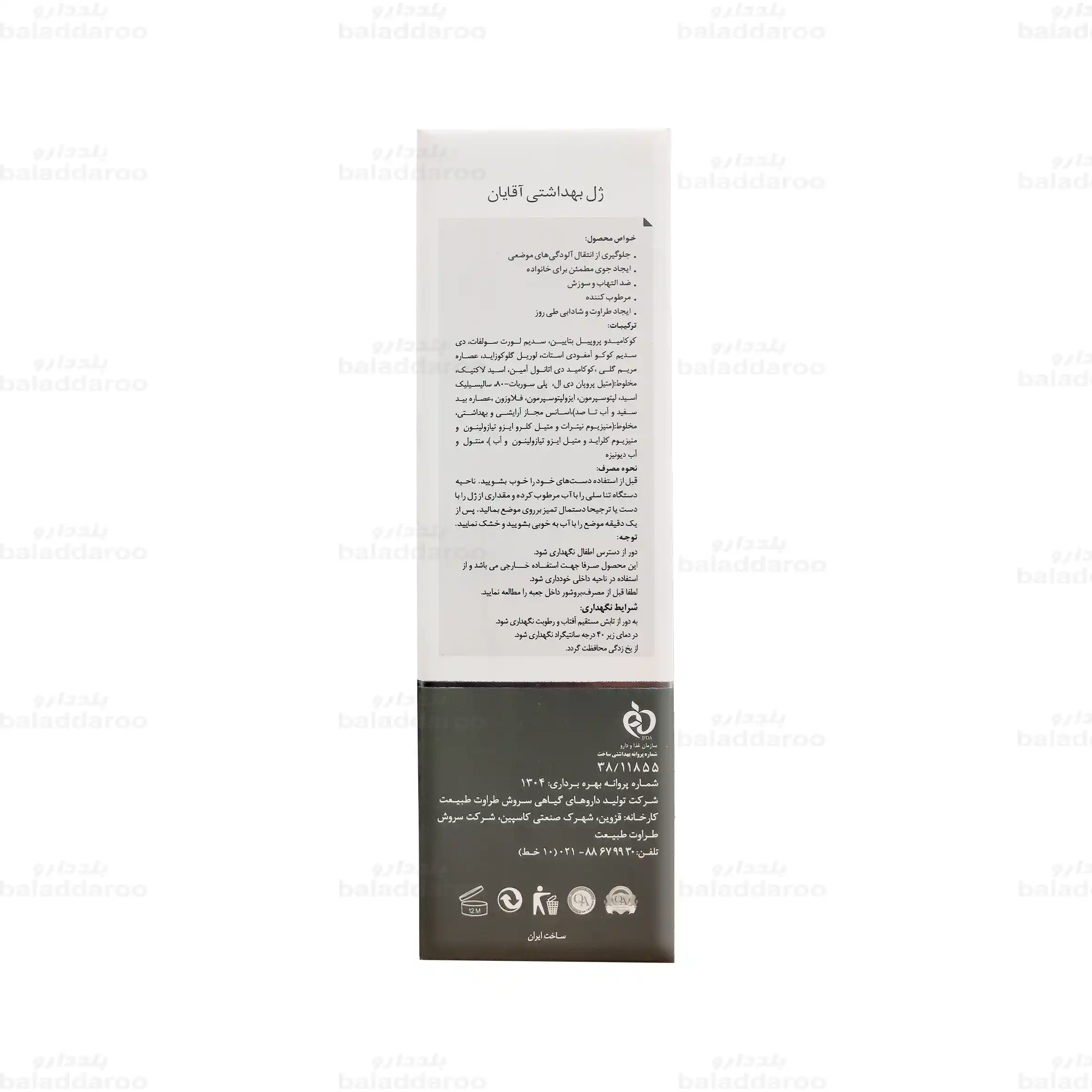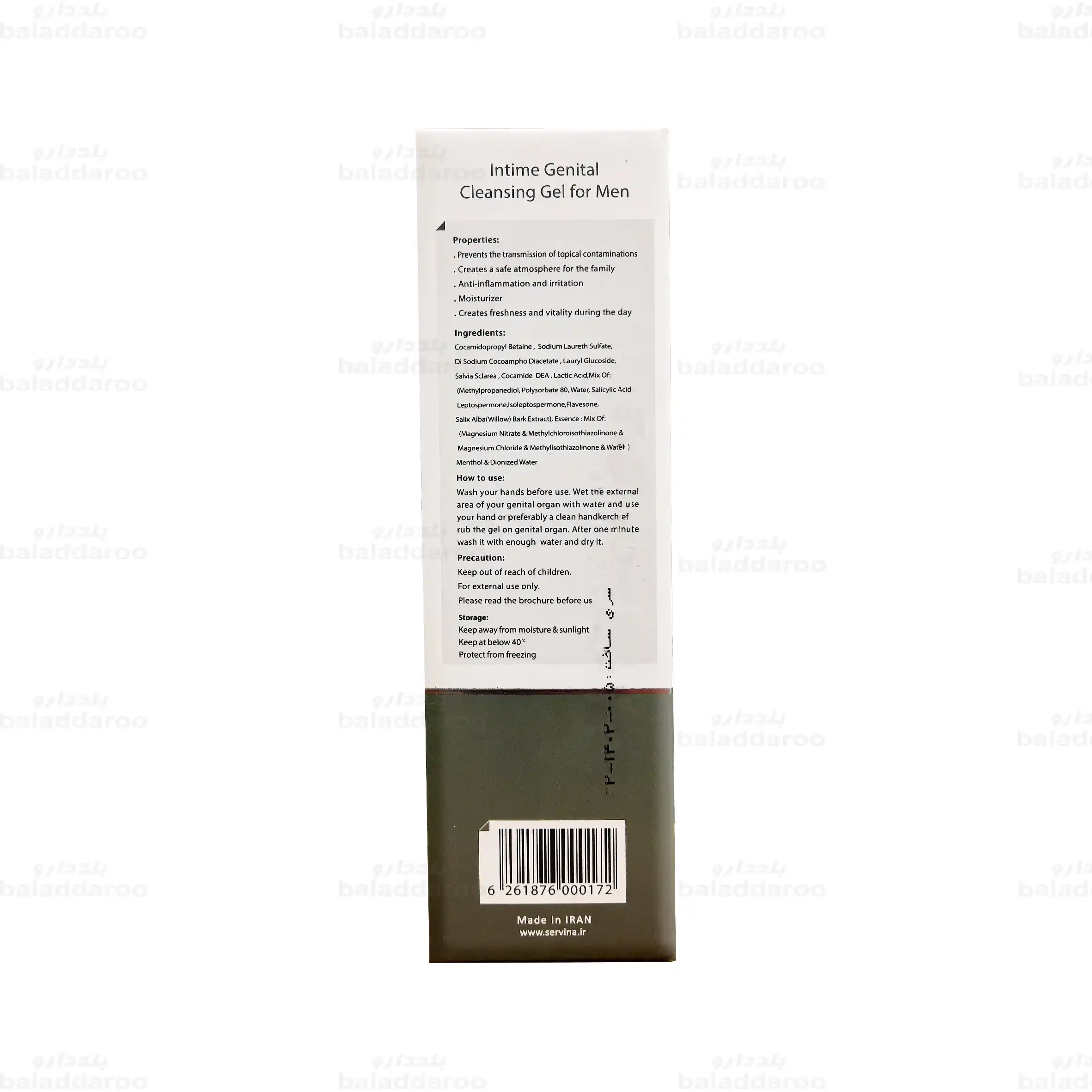 این محصول تولید کشور ایران و شرکت داروهای گیاهی سروش طراوت طبیعت است. استفاده از این فرآورده مانع از انتقال آلودگی های موضعی در ناحیه تناسلی آقایان شده و طراوت و شادابی را در طول روز به ارمغان می آورد.