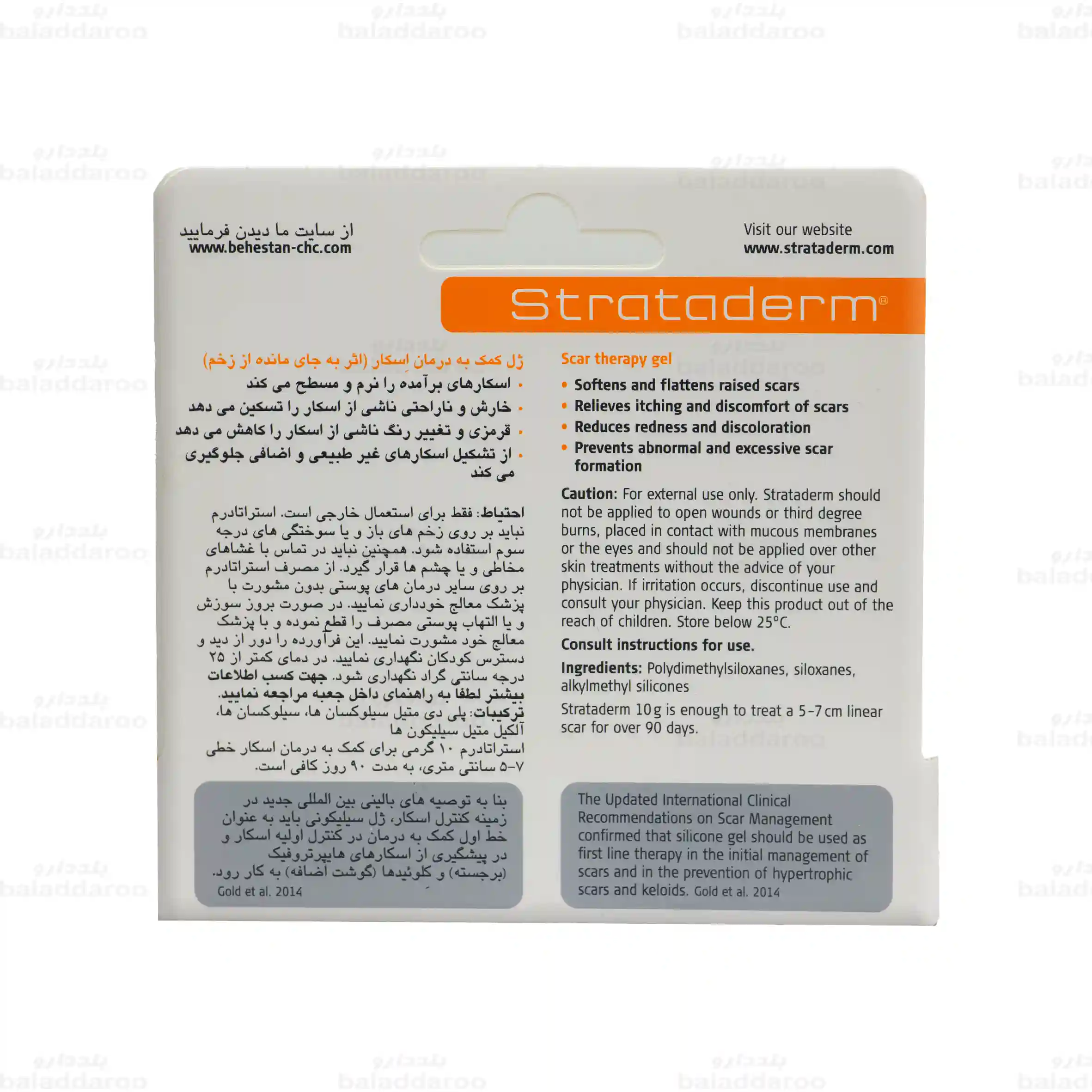 استراتادرم، یک ژل سیلیکونی شفاف و غیرچسبناک است که به صورت تخصصی برای کمک به درمان اسکار و اثر به جای مانده از زخم های قدیمی و جدید طراحی شده است و در بهبود بافت های آسیب دیده، پیشگیری و درمان گوشت اضافه و اسکارهای هایپرتروفیک (برجسته) و کمرنگ و صاف شدن جای زخم نقش اساسی دارد.