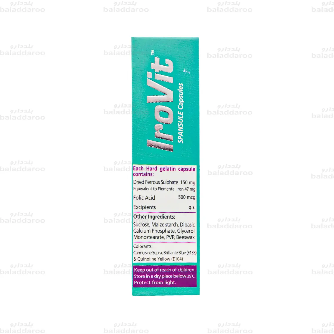 هر کپسول آیرویت ویتان حاوی 150 میلی گرم آهن به فرم فروس سولفات و 500 میکروگرم فولیک اسید است که علاوه بر کمک به جبران کمبود آهن و فولیک اسید، در درمان کم خونی و کاهش خستگی های مفرط نقش اساسی ایفا می کند.