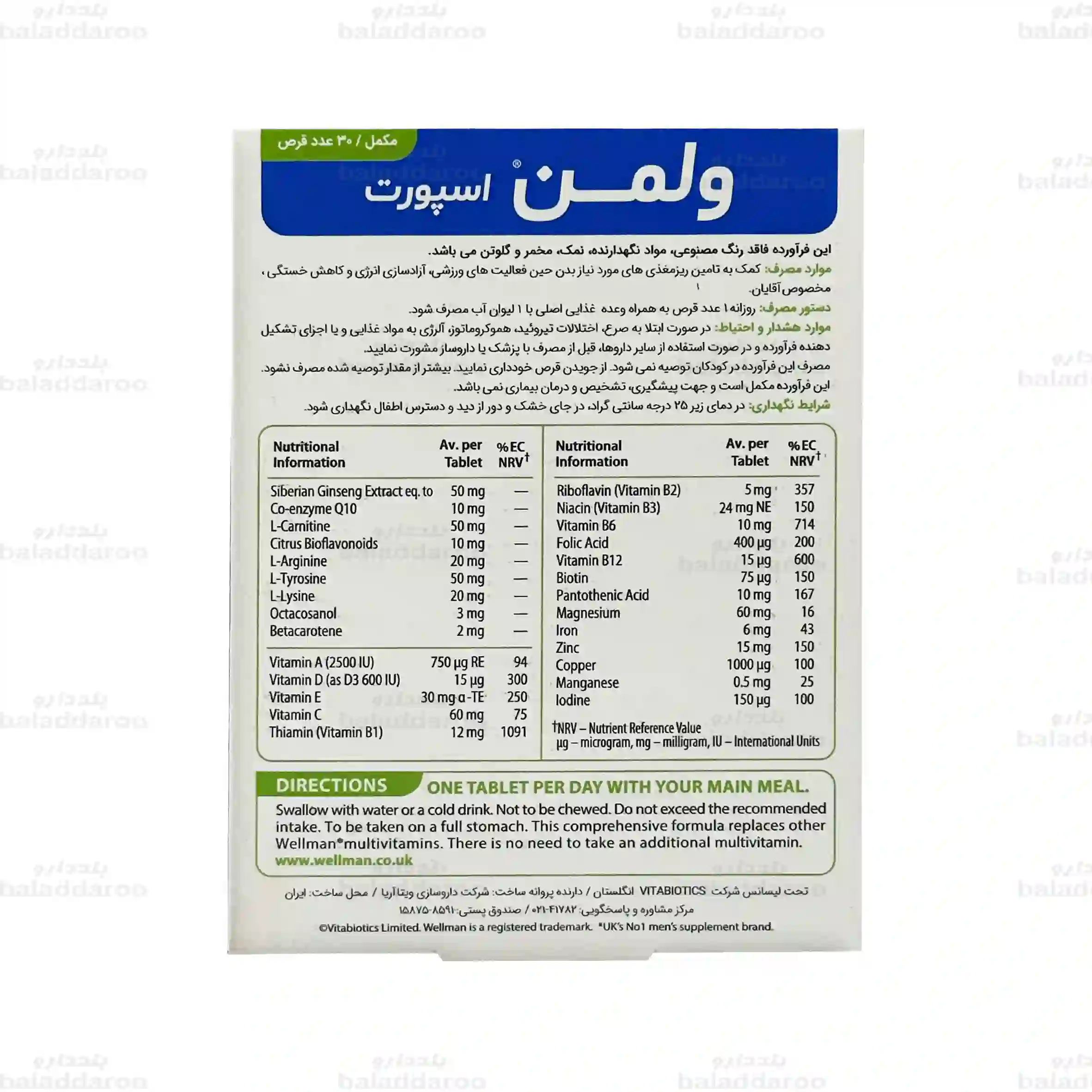 قرص ولمن اسپورت ویتابیوتیکس 30 عدد