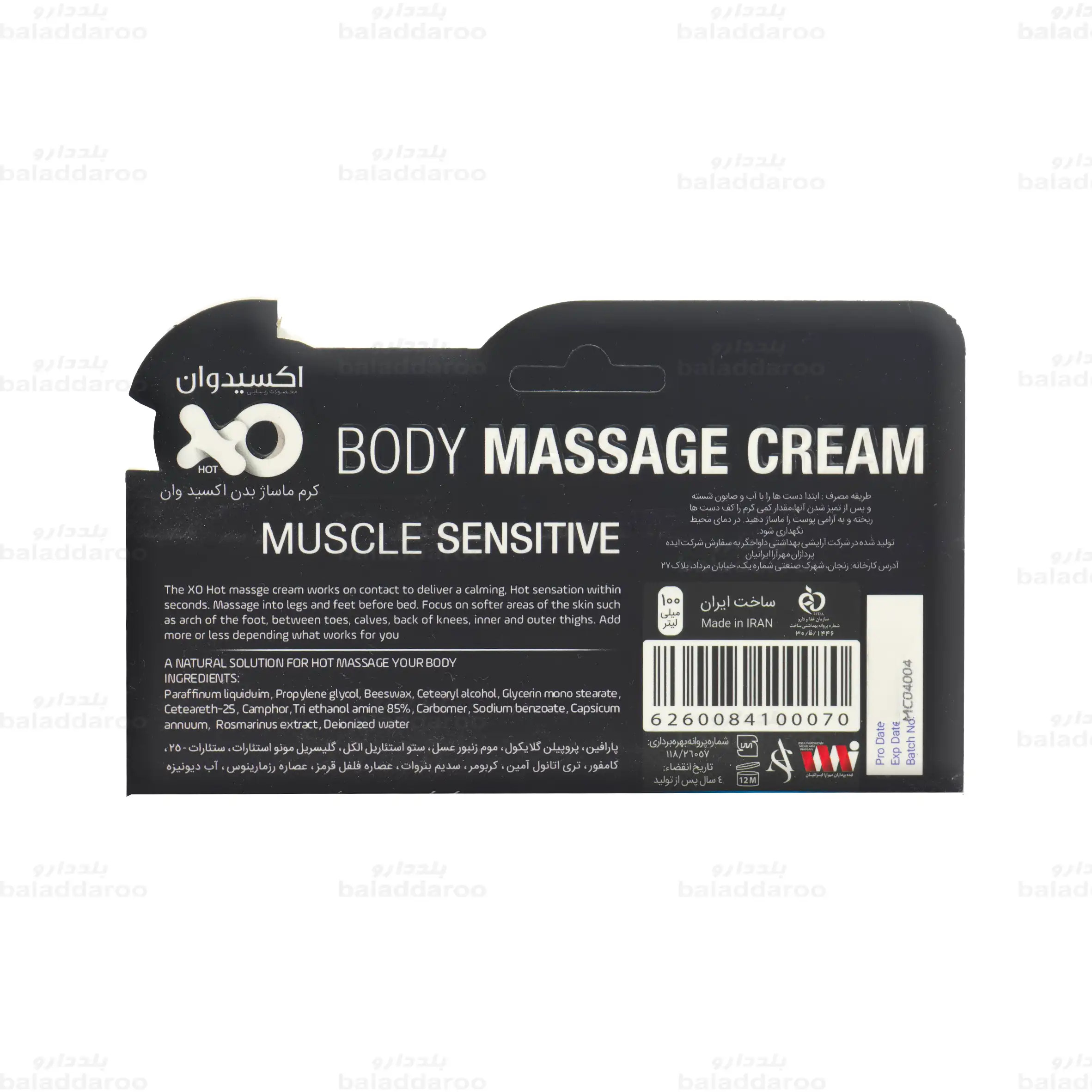 کرم ماساژ بدن اکسید وان حاوی عصاره فلفل قرمز و رزماری 100 میلی لیتر